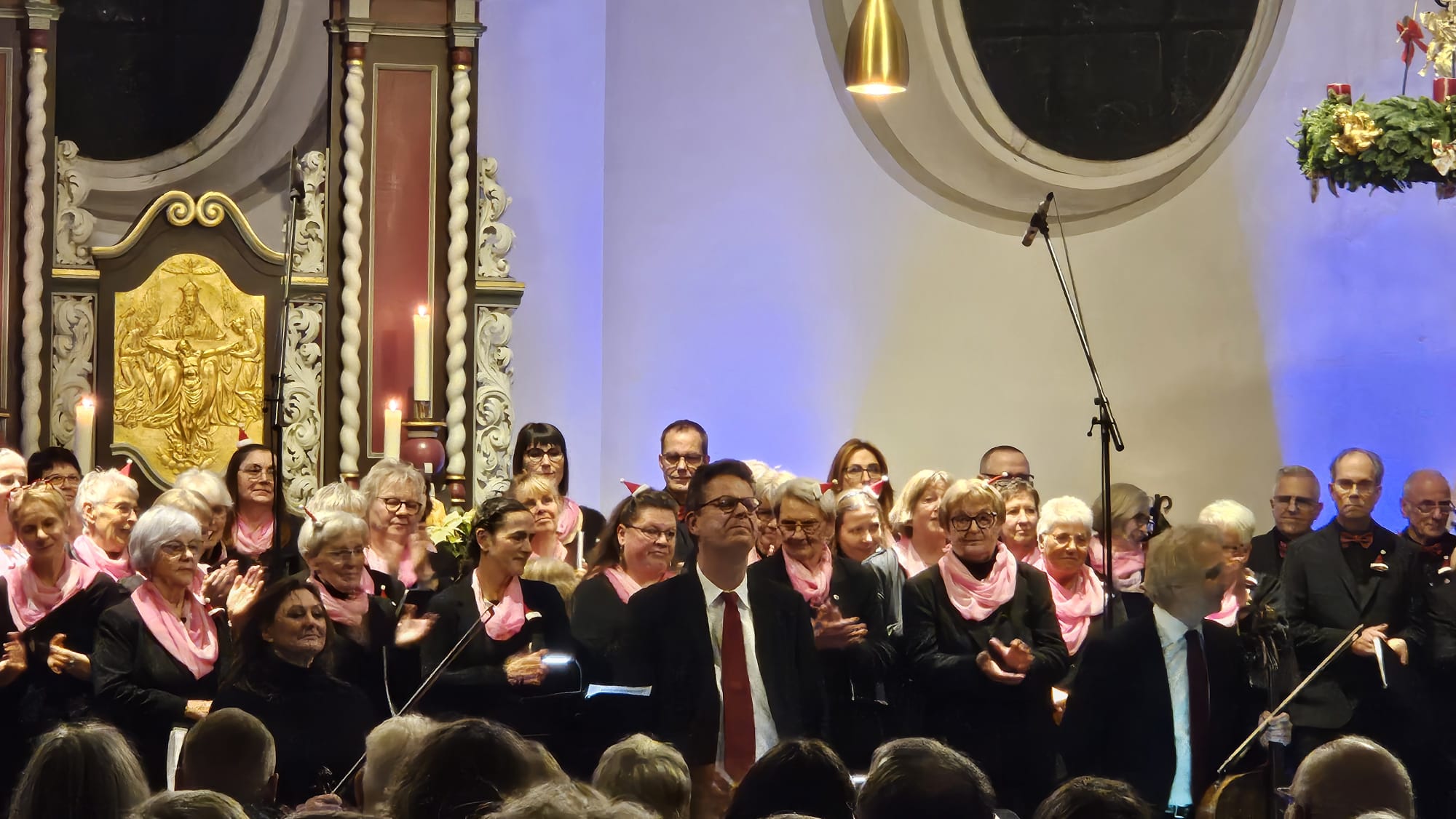 Mit den besinnlichen Stücken „Weihnachtsgesang – Cantique pour Noel“ und „Tollite hostias“ beendeten das Trio und die Chorfreunde ihr gemeinsam vorgetragenes Repertoire.